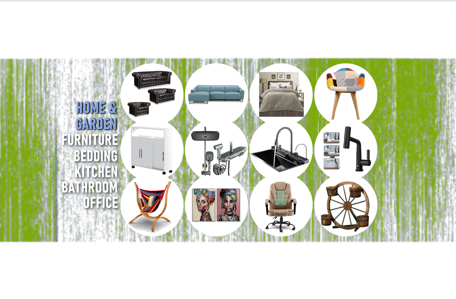 Everything for home and garden; furniture, bedding, pillows, bathroom, kitchen, lighting, faucets,...