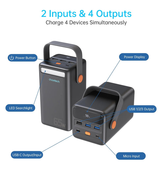 CHOETECH B664 50000mAh PD65W Power Bank with LED Flashlight LCD Display