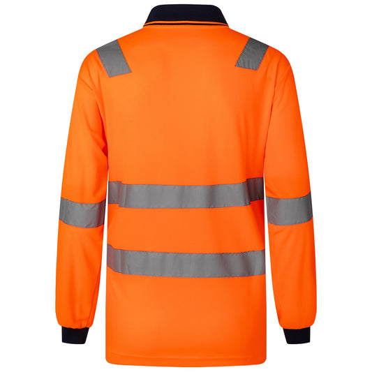 HI VIS Long Sleeve Workwear Shirt w Reflective Tape Cool Dry Safety Polo 2 Tone, Fluoro Orange / Navy, L
