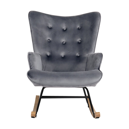 Set of 4 Velvet Tufted Dining Chairs French Provincial Style Grey