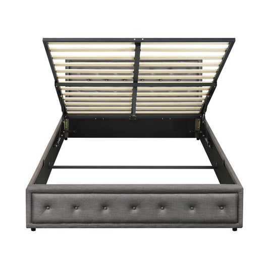Queen Bed Frame with Gas Lift Storage Base Boucle White