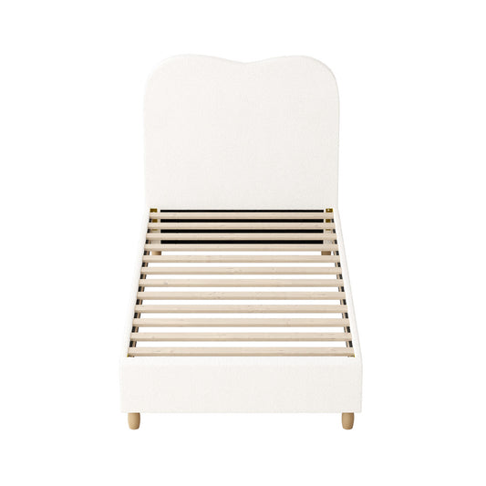 Single Size Bed Frame in White Boucle with Cloud Shape