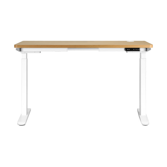 Standing Desk Dual Motor Adjustable Motorized White and Oak 150 cm
