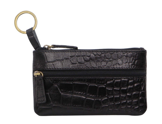 Pierre Cardin Ladies Womens Genuine Leather RFID Coin Purse Wallet - Black (Croc)
