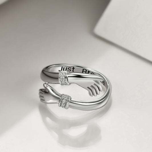 Just Breathe Hug Rings For Women Sterling Silver Adjustable Hand Ring Jewelry Gift For Women Girls