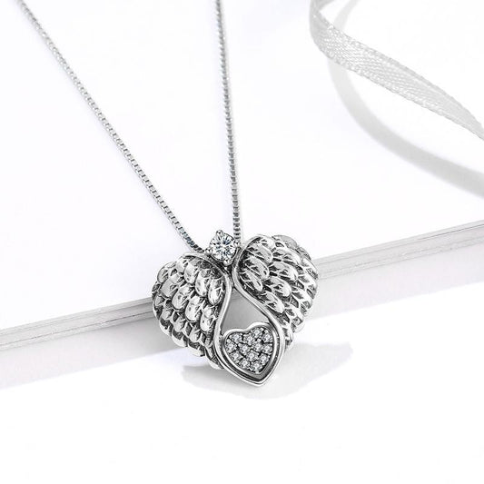 925 Sterling Silver Guardian Angel Wing Pendant Necklace for Women
