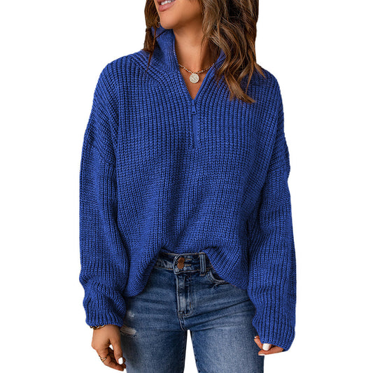 Autumn And Winter Zipper Stand-up Collar Thick Sweater For Women