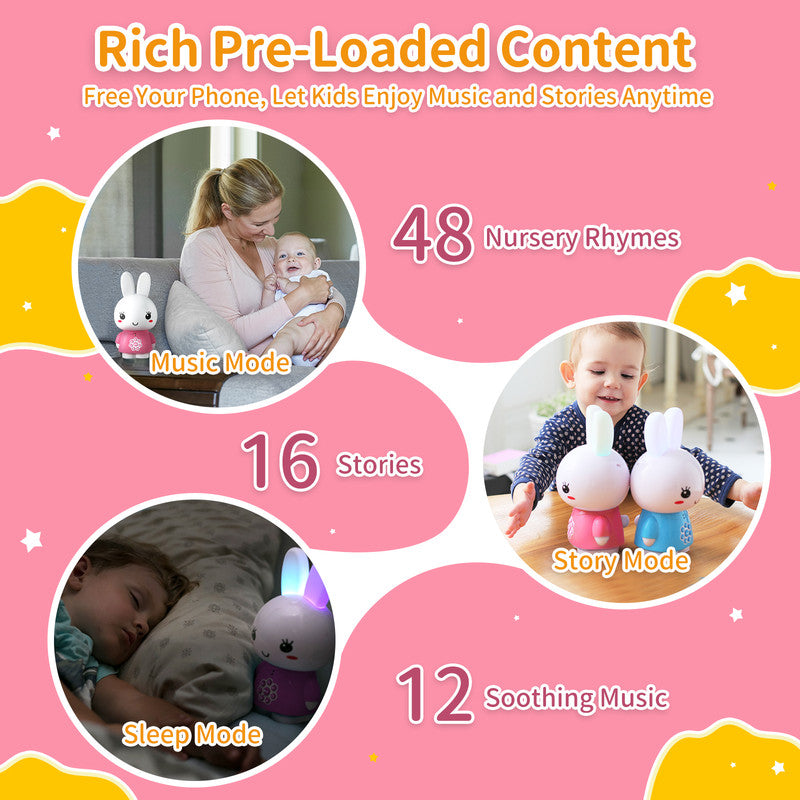 - ✨【Screen-Free Audio Player】Baby musical toy pre-installed with 16 fun stories, 12 soothing lullabies, and 48 nursery rhymes, spreading joy and happiness to children. Non-irritating screen to protect your baby's eyesight. It promotes your baby's sensory development and hand-eye coordination.