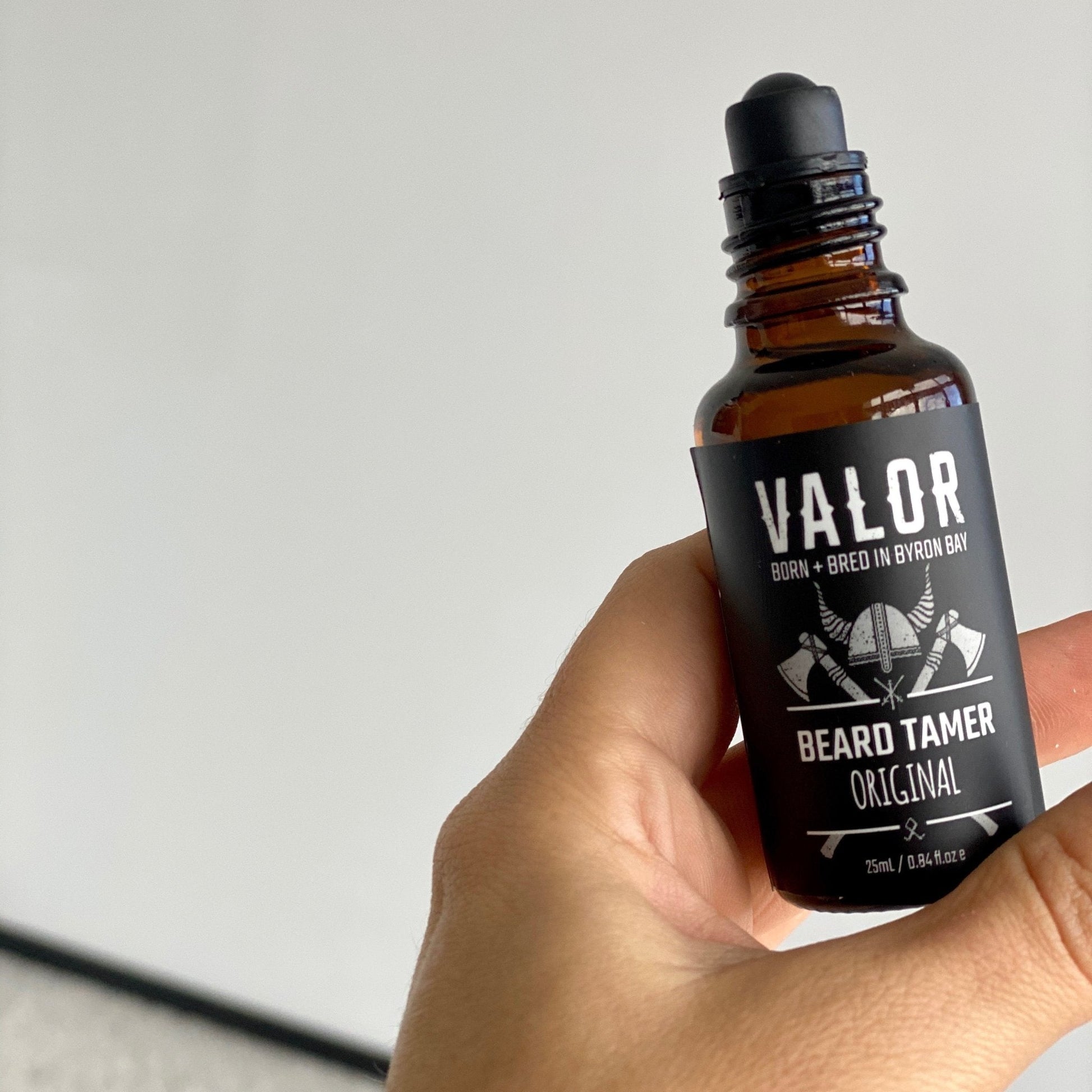 Directions:Shake bottle, then use the roller mechanism to liberally cover beard and face. Work into the skin and base of the whiskers with your fingertips or Valor Comb.