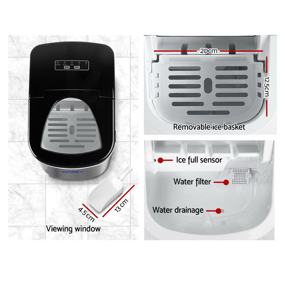 Devanti 2.4L Stainless Steel Portable Ice Cube Maker