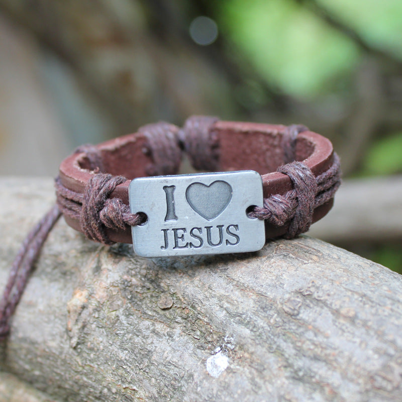 English Letter Bracelet Genuine Leather Retro Simple Personality Men's Hand Jewelry