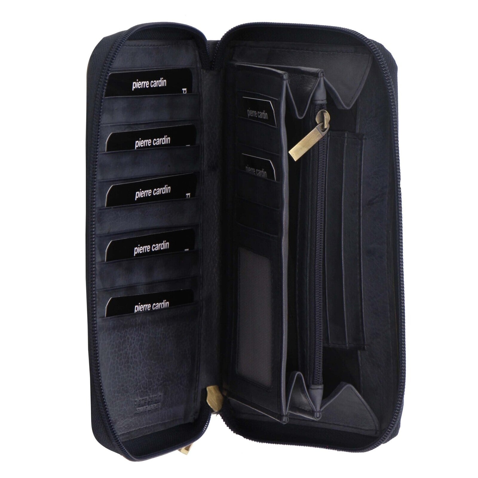 Perfect everyday wallet which fits your phone in too! This Ziparound wallet features secure zip around closure, RFID protection to prevent the scanning of your debit/credit cards, a slip pocket for your smartphone, multiple credit card slots, notes section, ID window, zipped section in the middle of the back compartment, Pierre Cardin logo and hardware, Pierre Cardin silver satin lining and the waller comes packaged in a elegant Pierre Cardin gift box.