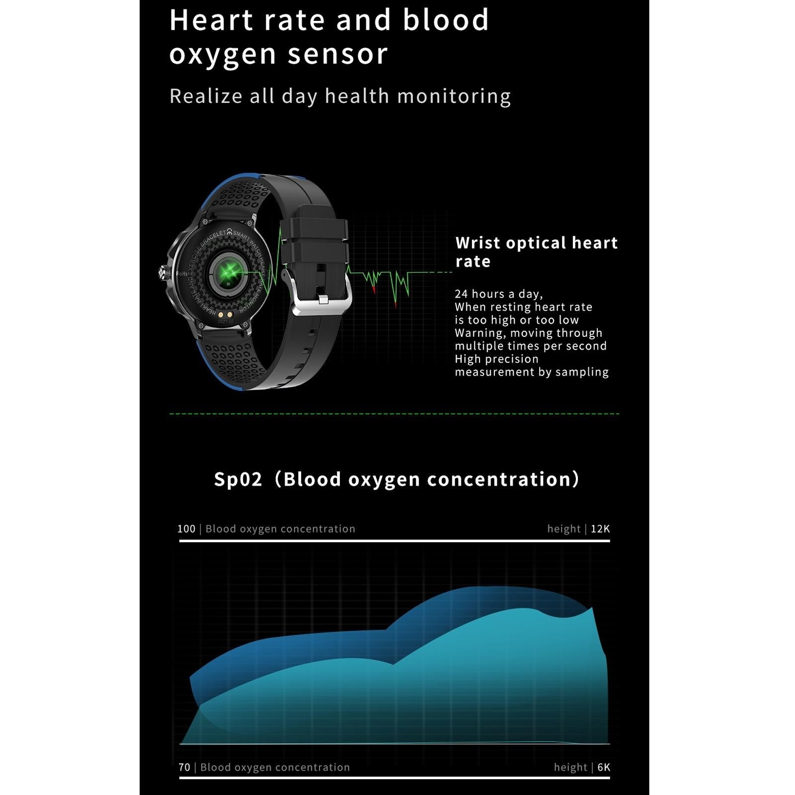 ⢠Heart rate, blood pressure, and blood oxygen detection